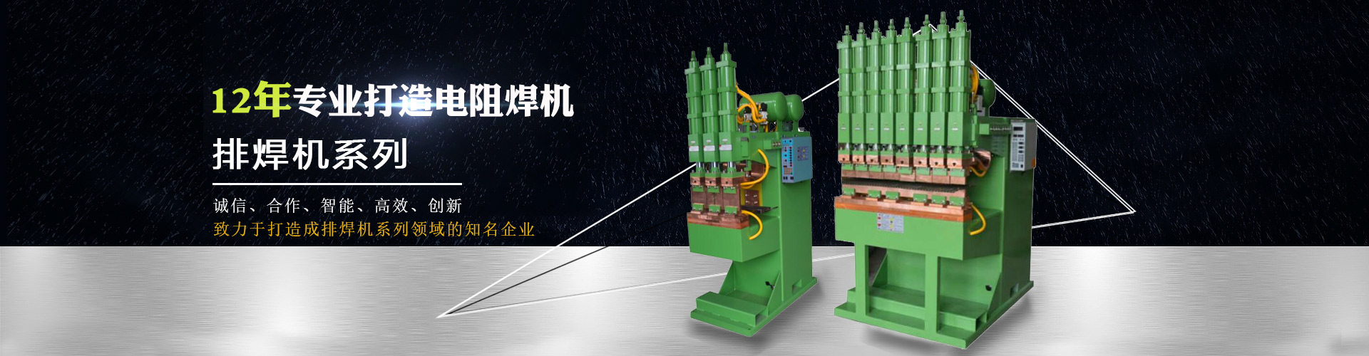 產品有:排焊機,多頭排焊機,XY軸自動排焊機,中頻點焊機,螺母點焊機,螺母輸送機,打扣機,打圈機,自動彎線機,平臺式無痕點焊機,彎框對焊一體機,風機網罩自動螺旋繞線機等。